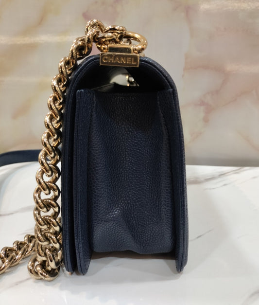 Chanel Boy25 Medium Caviar Navy GHW #29. Size 25x15x9cm