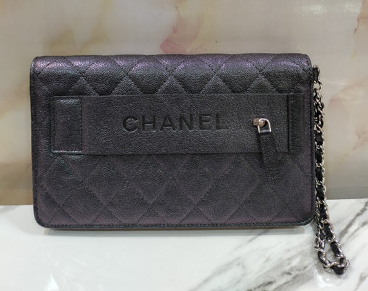 Chanel WOC Iridescent Purple Black SHW #27. Size 20x11x3cm
