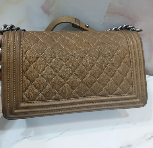 Chanel Boy25 Medium Caviar Bronze RHW#17. Size 25x15x9cm