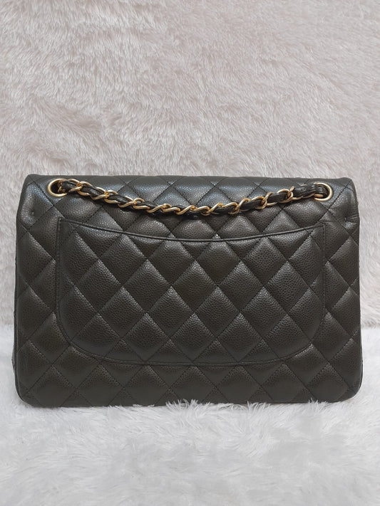 Chanel Jumbo Caviar Olive GHW DF #21. Size 30x19,5x10cm