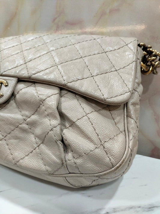 Chanel Coco Pleats Flap Messenger Caviar Beige #17 Size 50x35x7cm