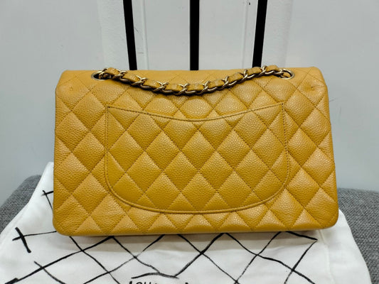 Chanel Medium Caviar Jaune GHW DF #21 Size 25,5x15,5x6,5cm