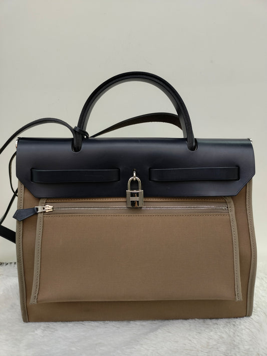 HB31 Zip Canvas Etoupe Flap Bleu Indigo PHW #C