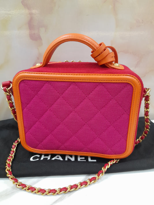 Chanel Filigree Vanity Case Small Jersey 3 colour GHW #28 Size 17x14x8cm