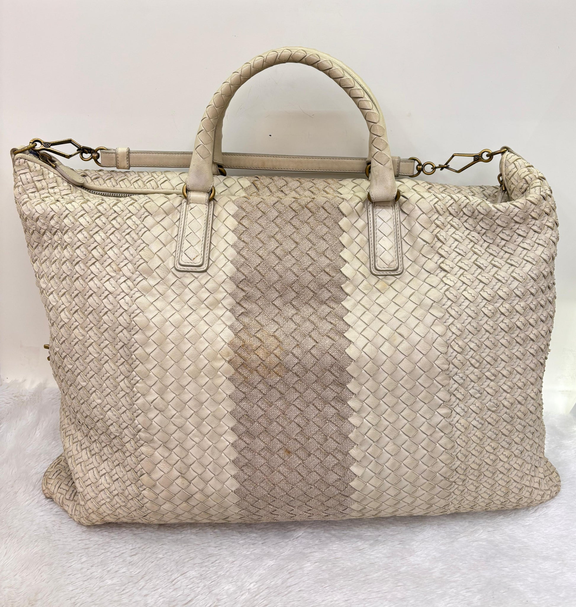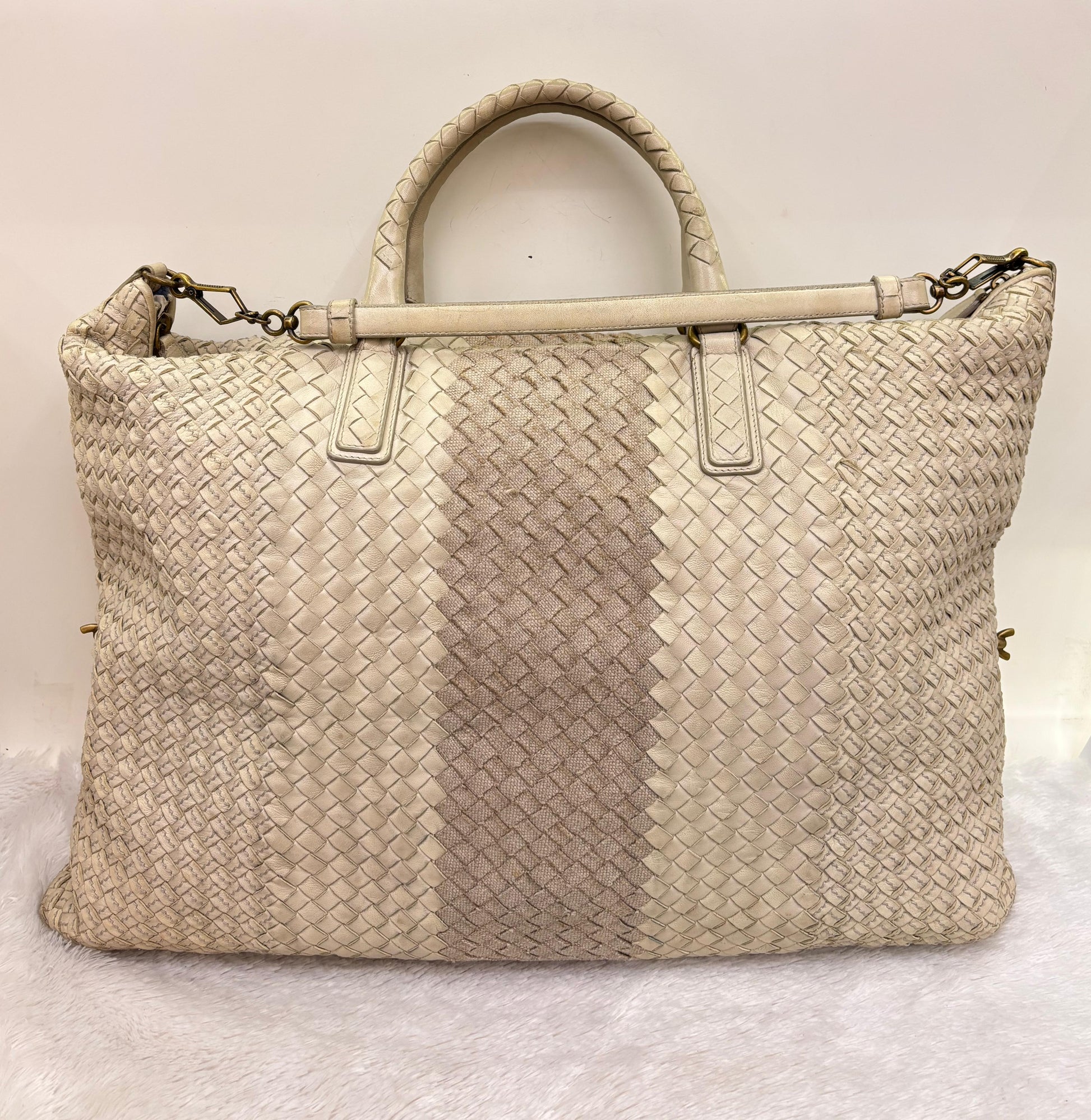 Bottega Veneta Bicolour Intrecciato Convertible Tote 3 Ways White Cream RGHW 2007