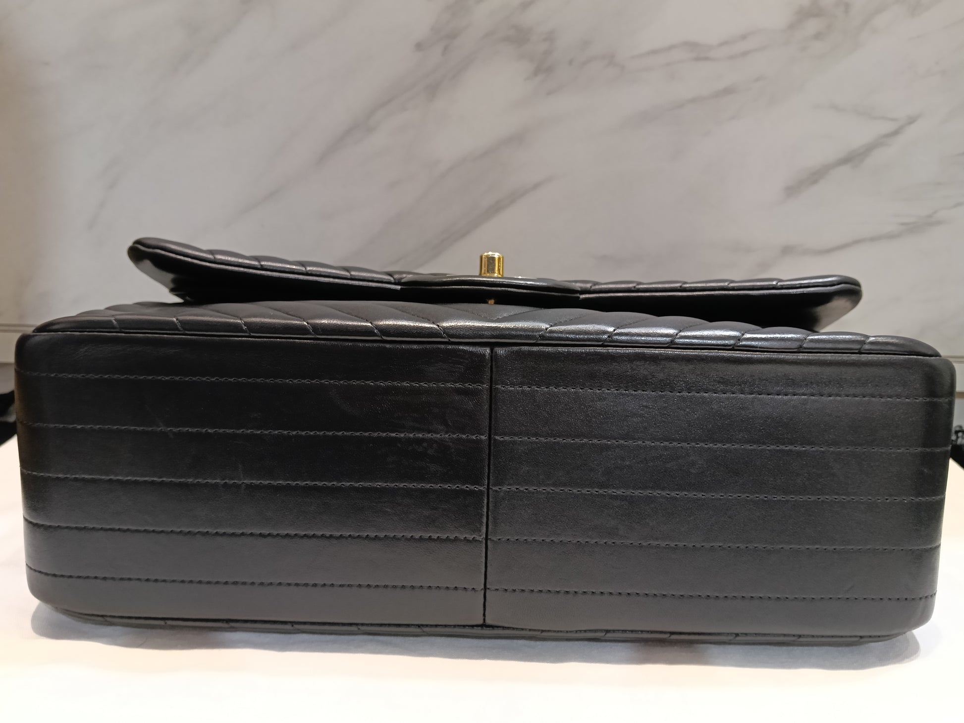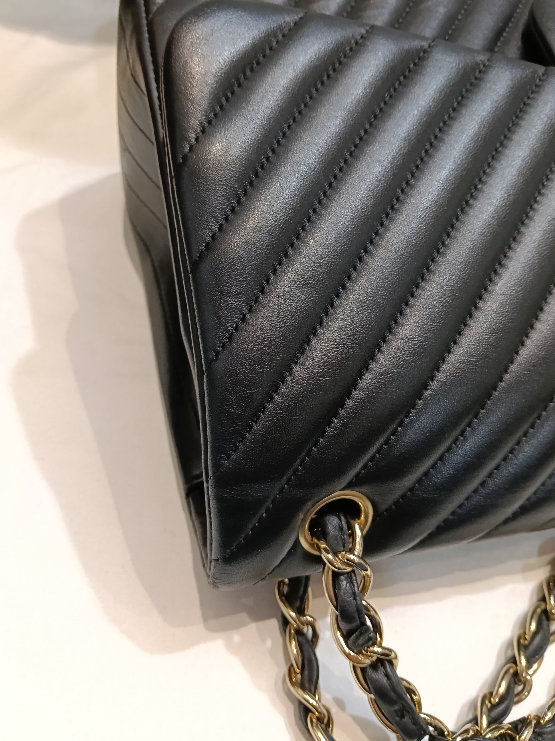 Chanel Jumbo Chevron Lamb Black GHW DF #27