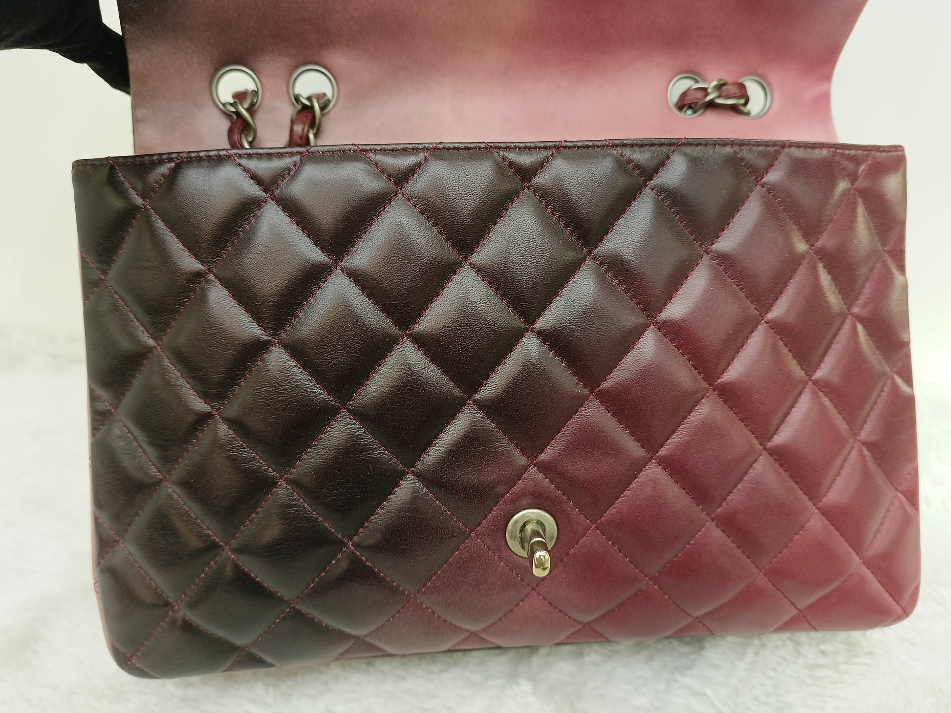 Chanel Jumbo Lamb Bordeaux Dark Red Ombre Pink RGHW SF #13