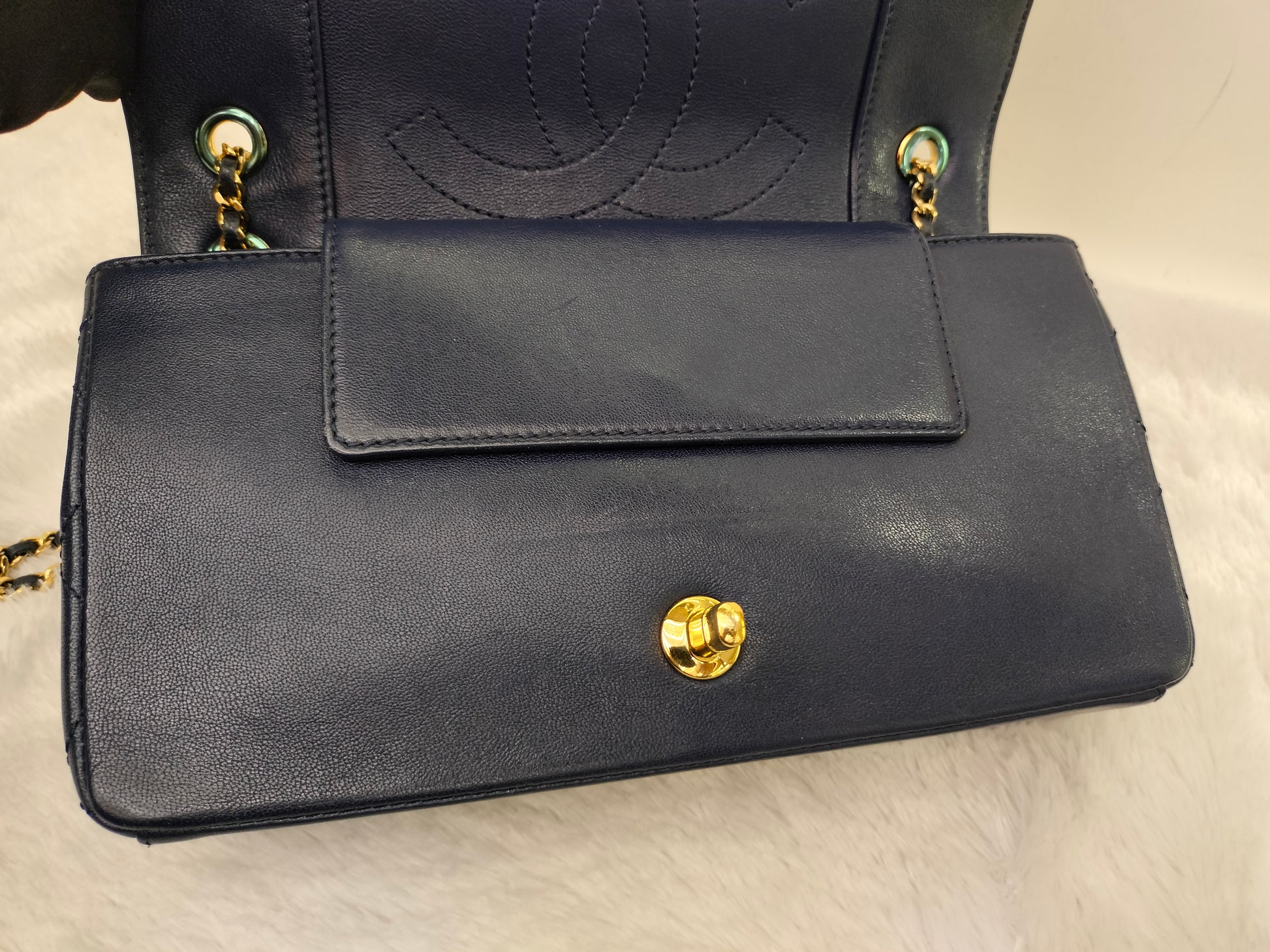 Chanel Mademoiselle Medium Flap Sheepskin Navy GHW #21
