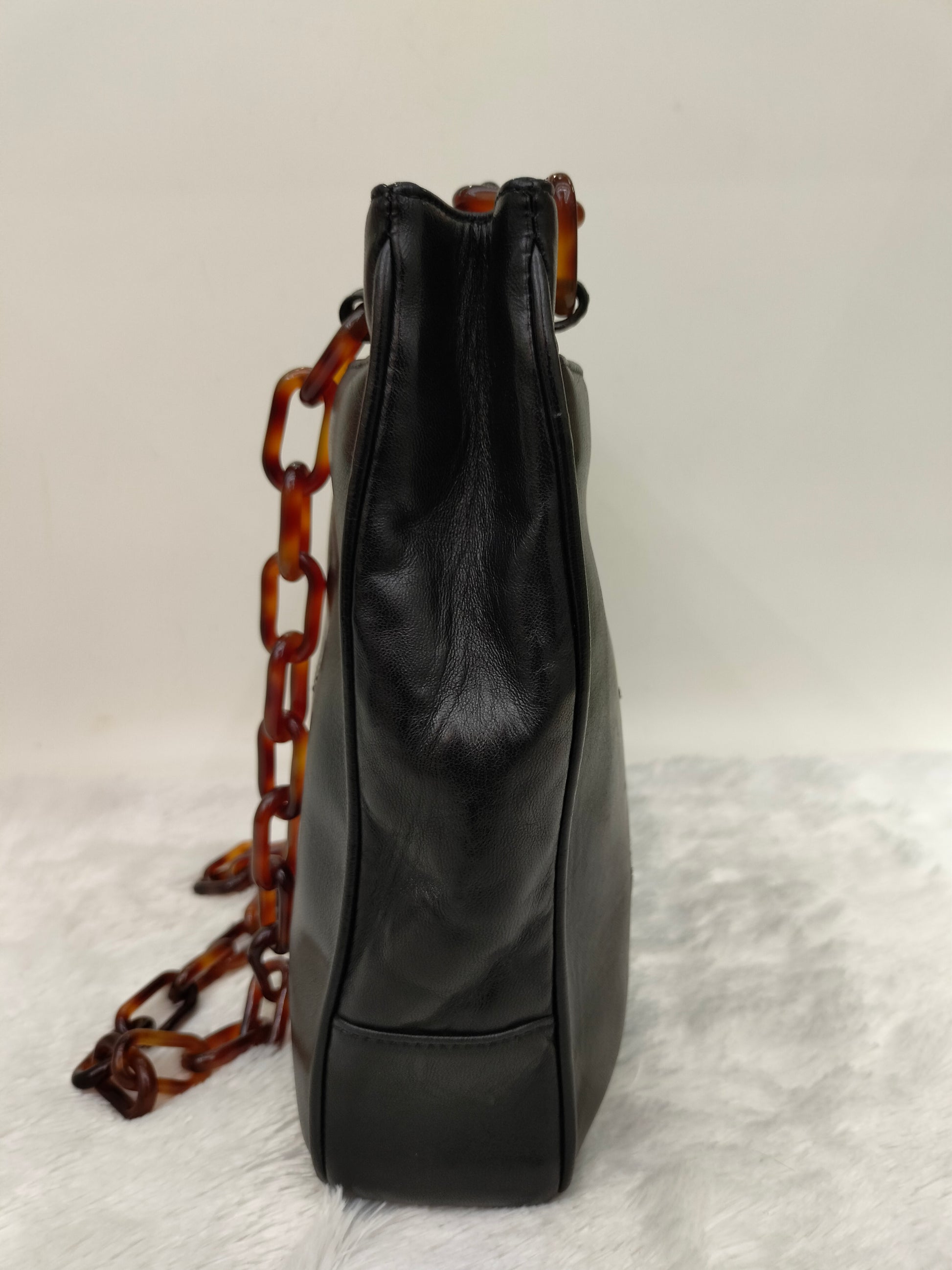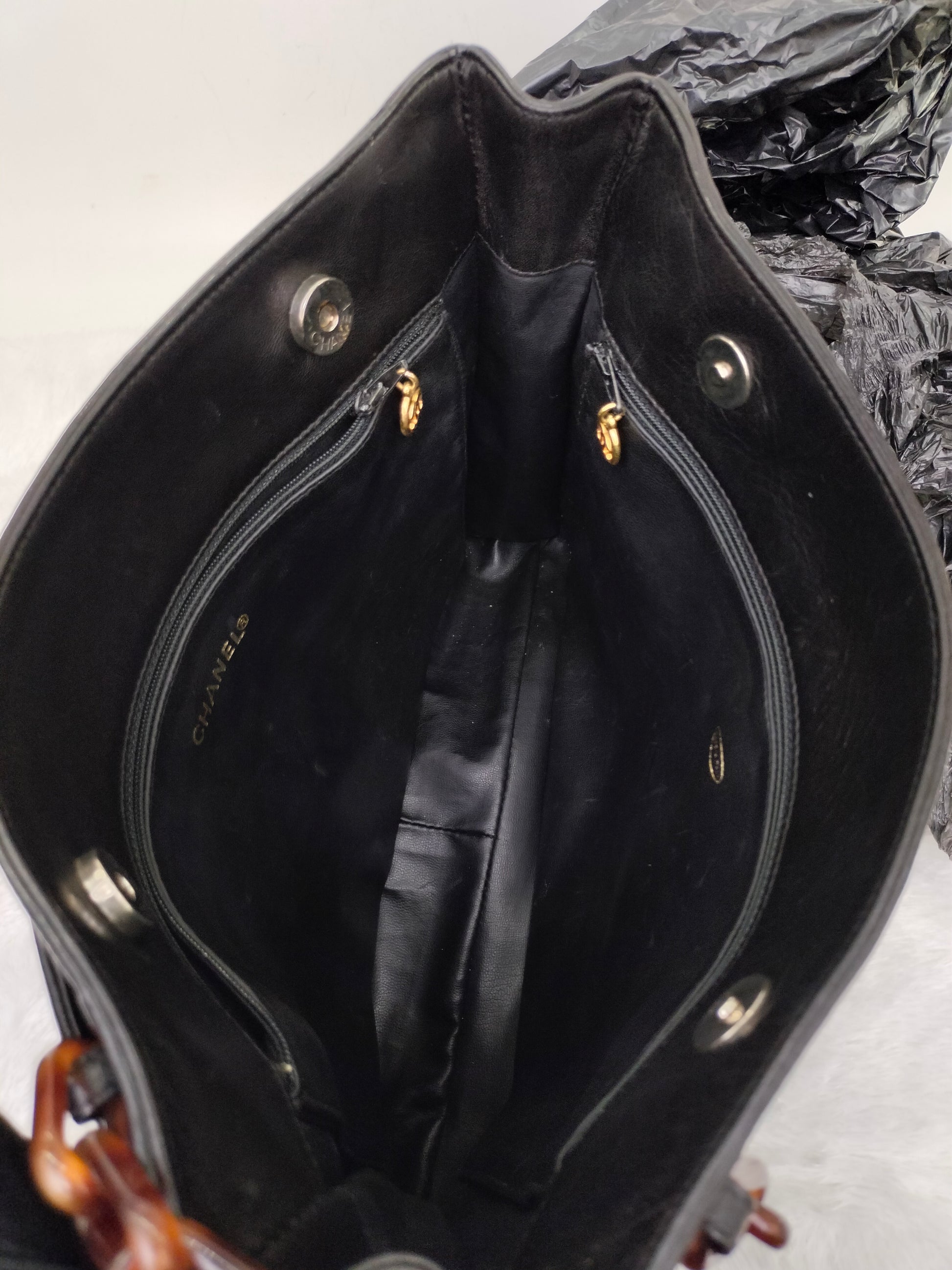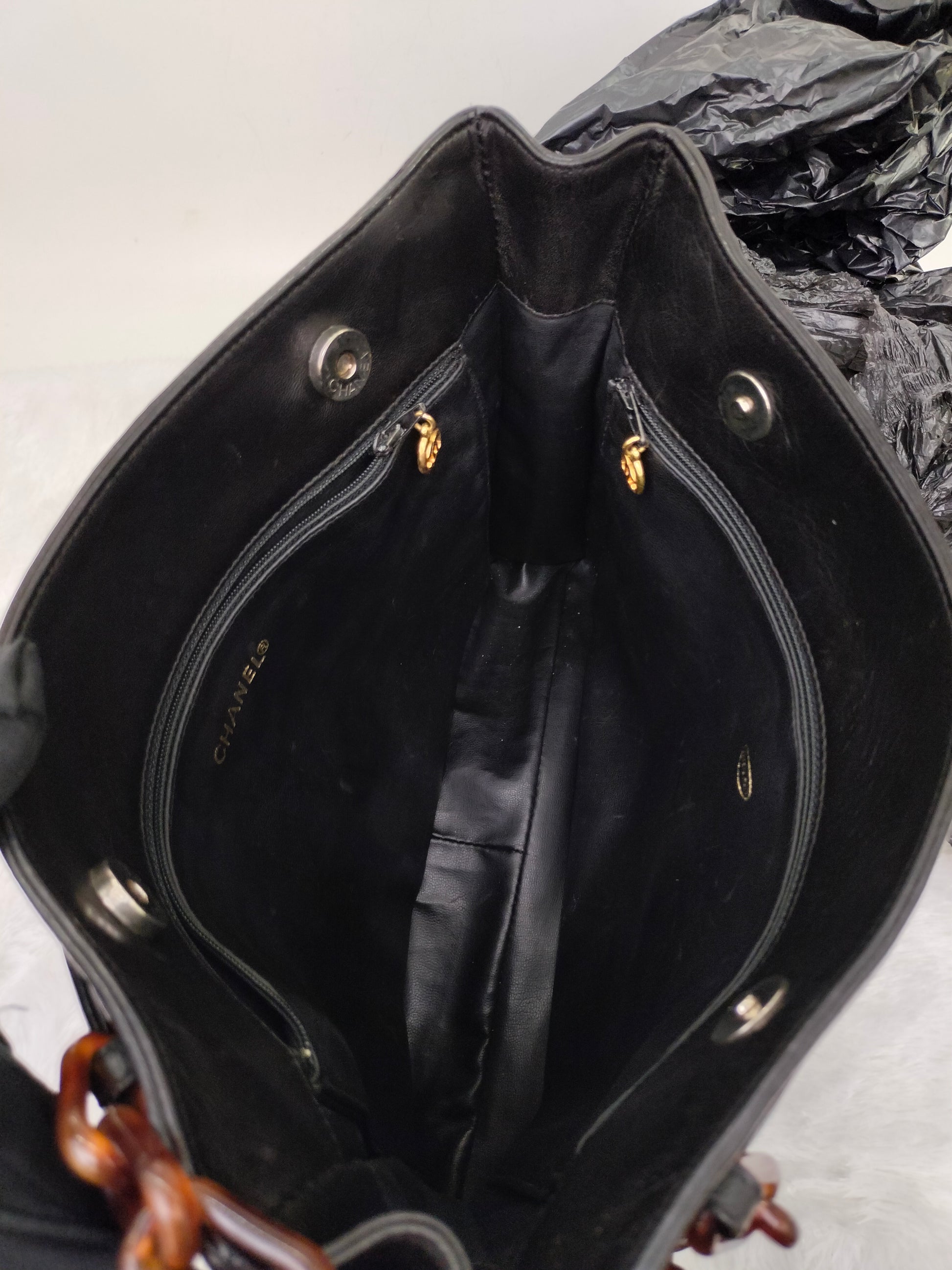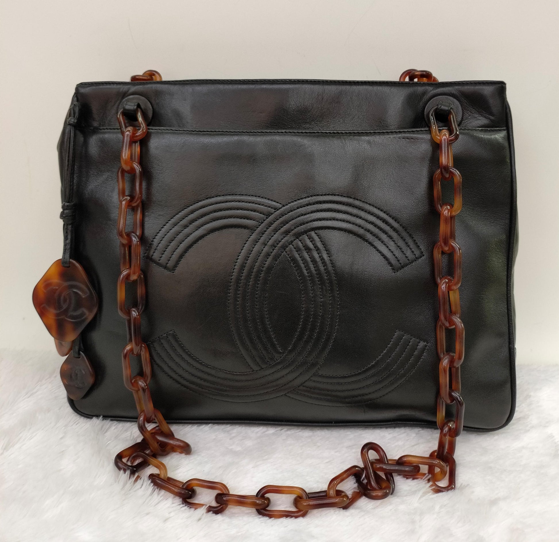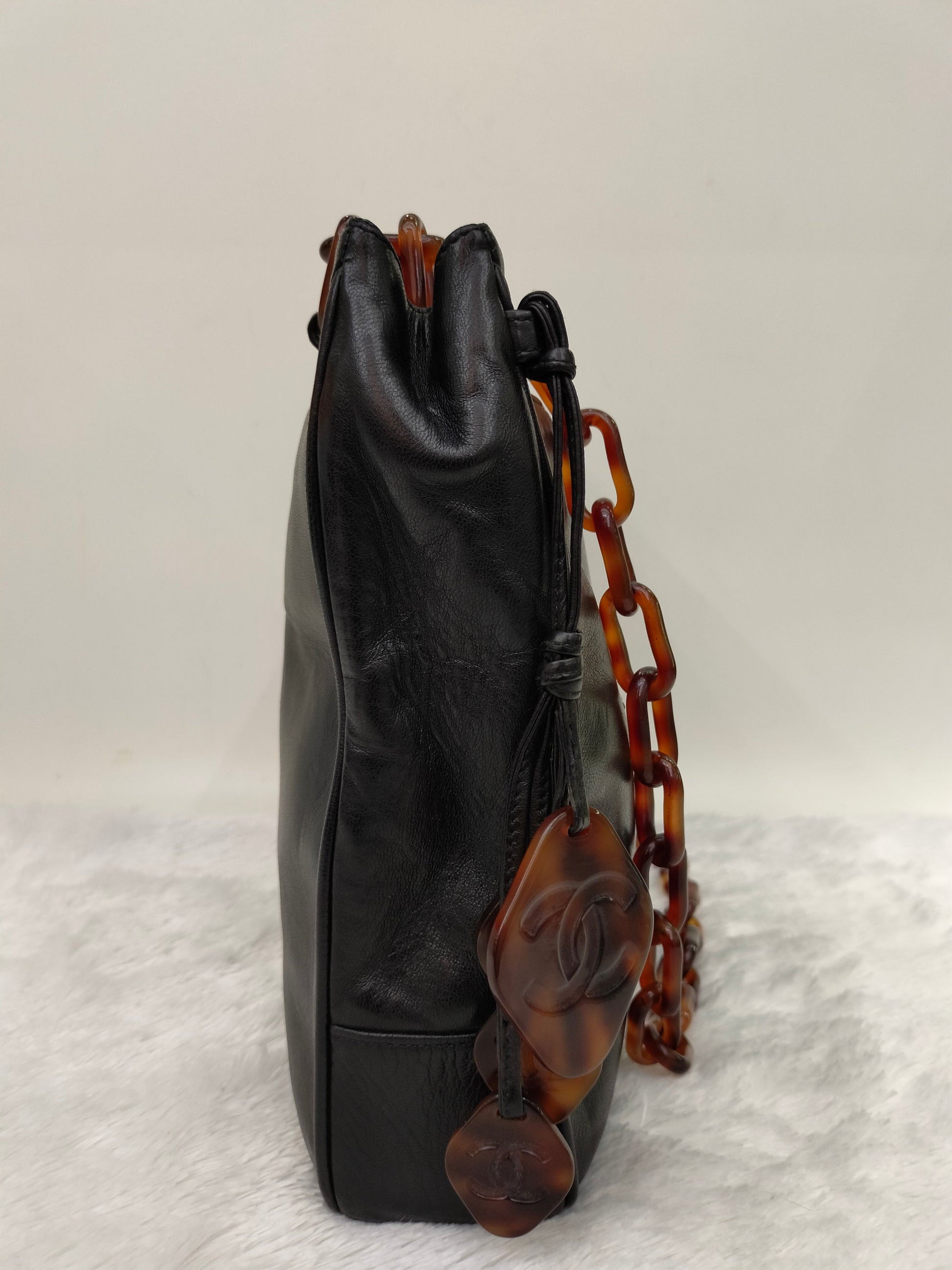 Chanel Tote Vintage Lamb Black Tortoise Chain #3