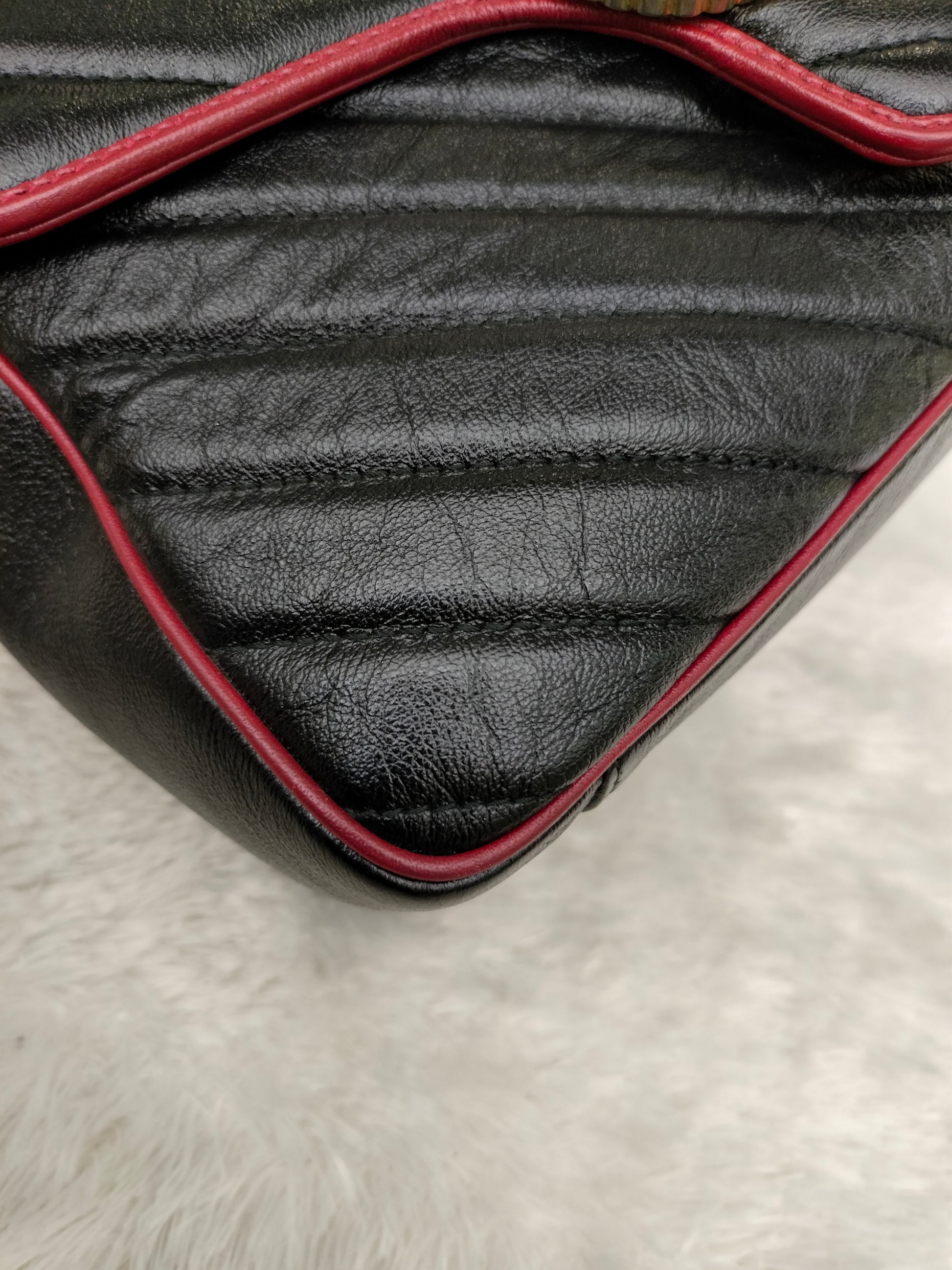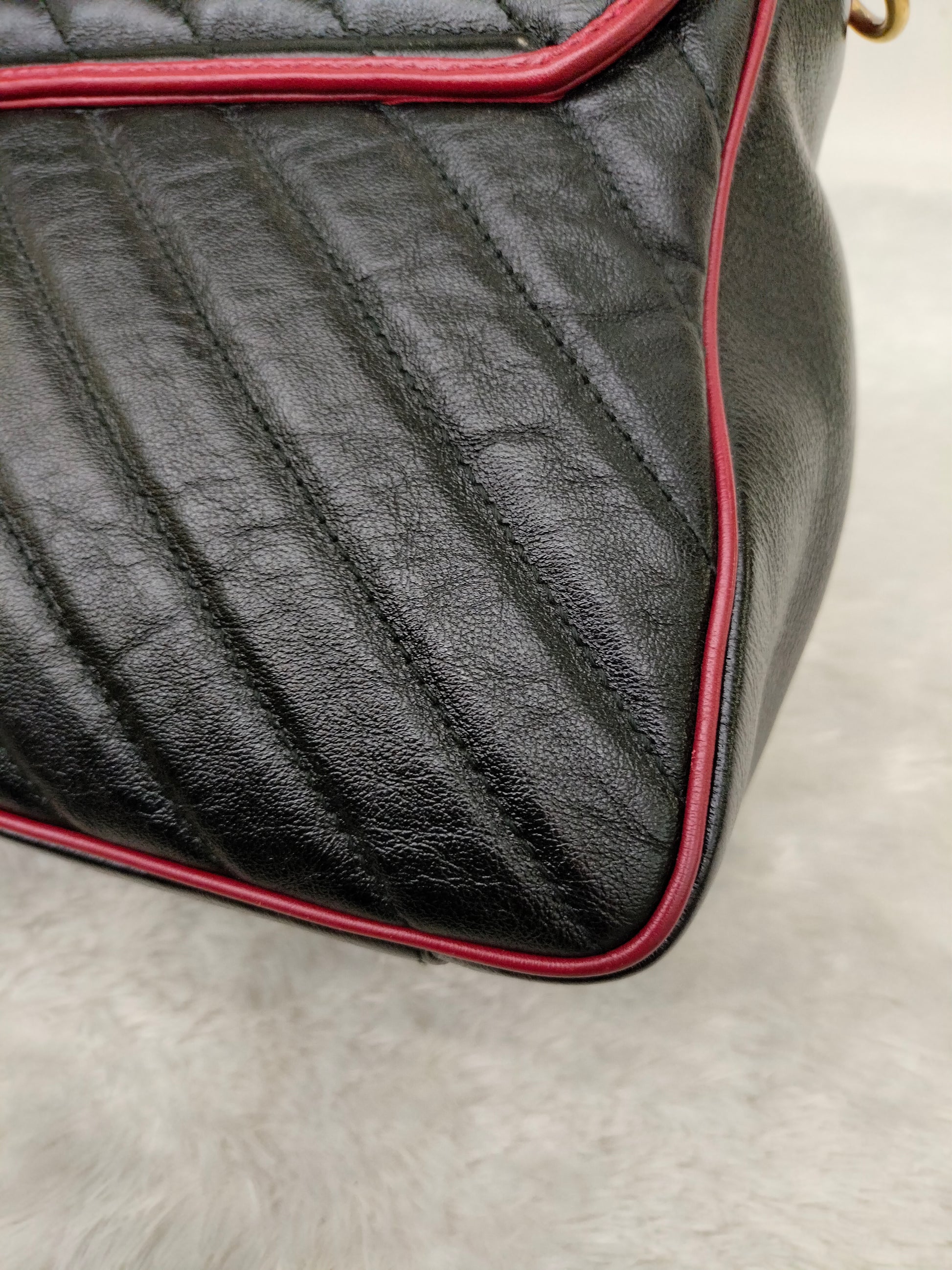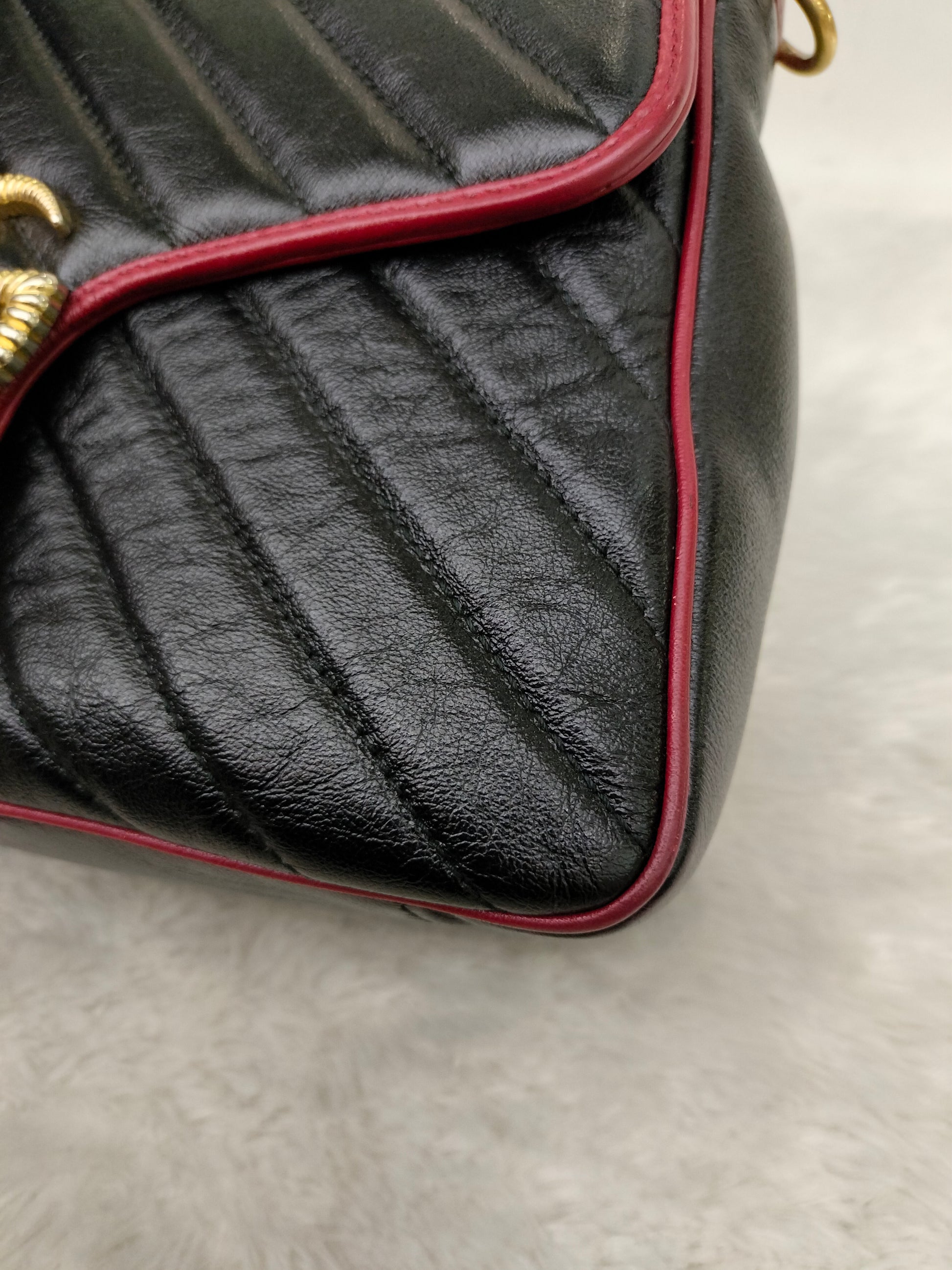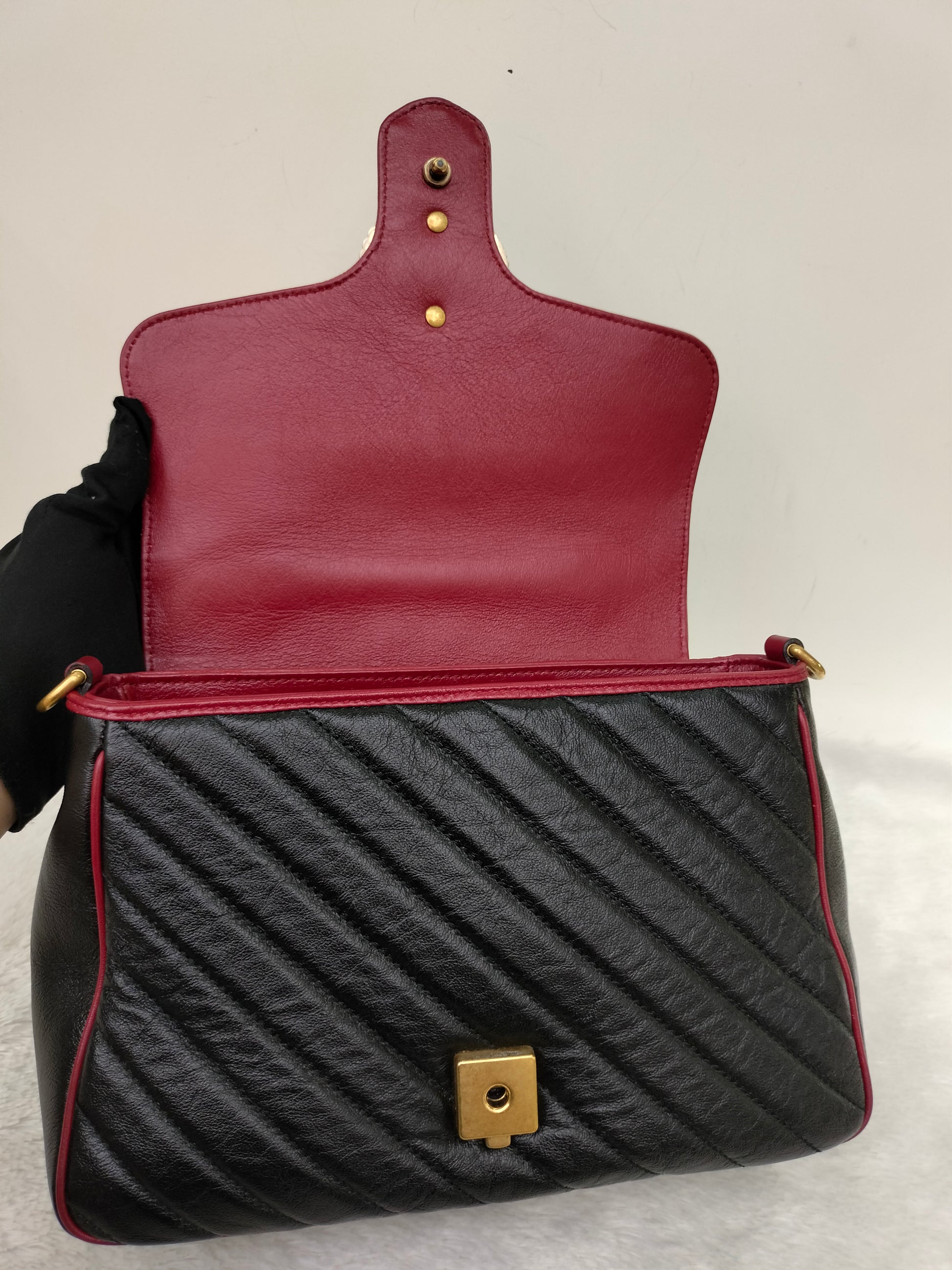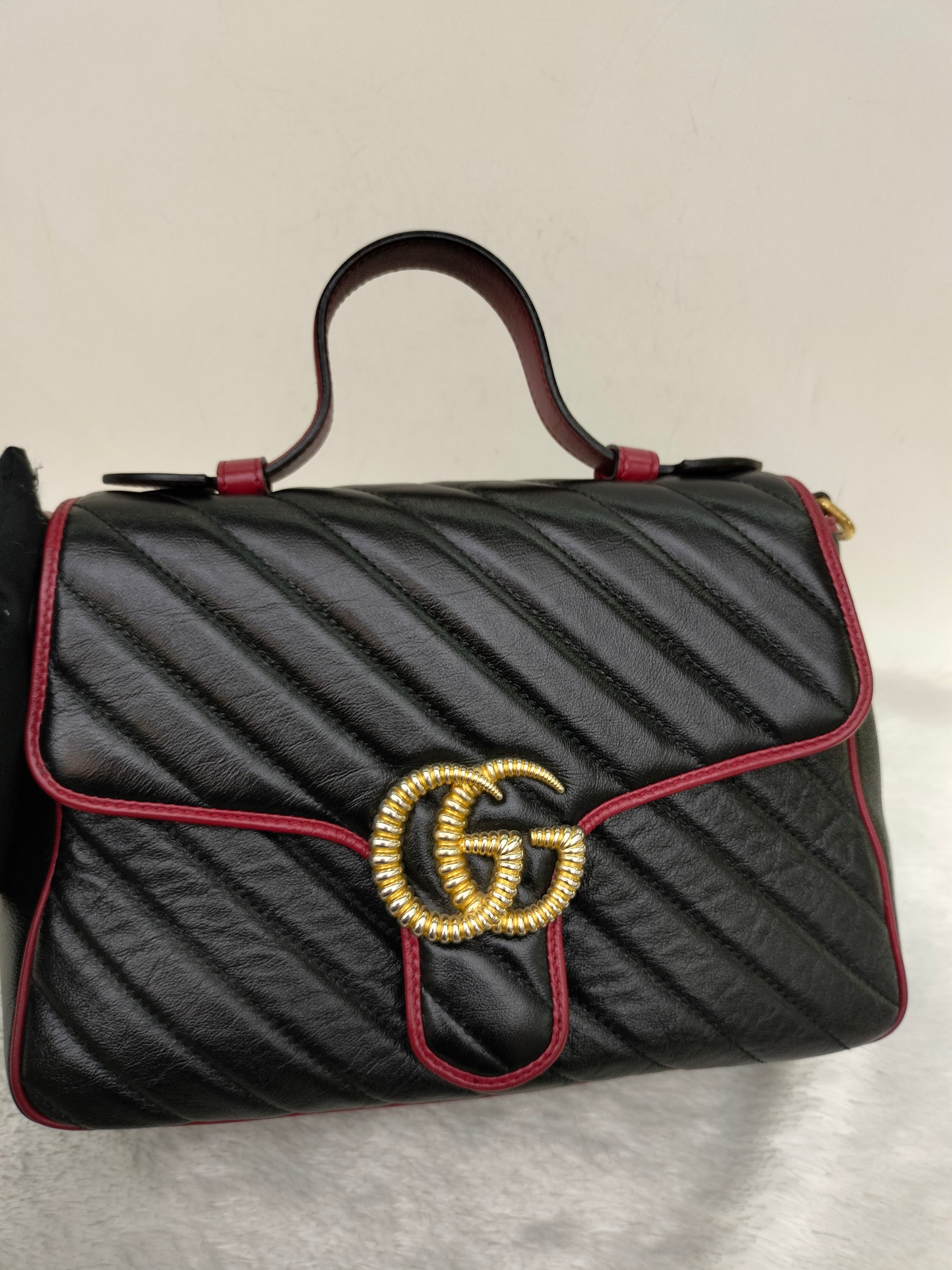 Gucci Marmont Top Handle Medium Black Red GHW