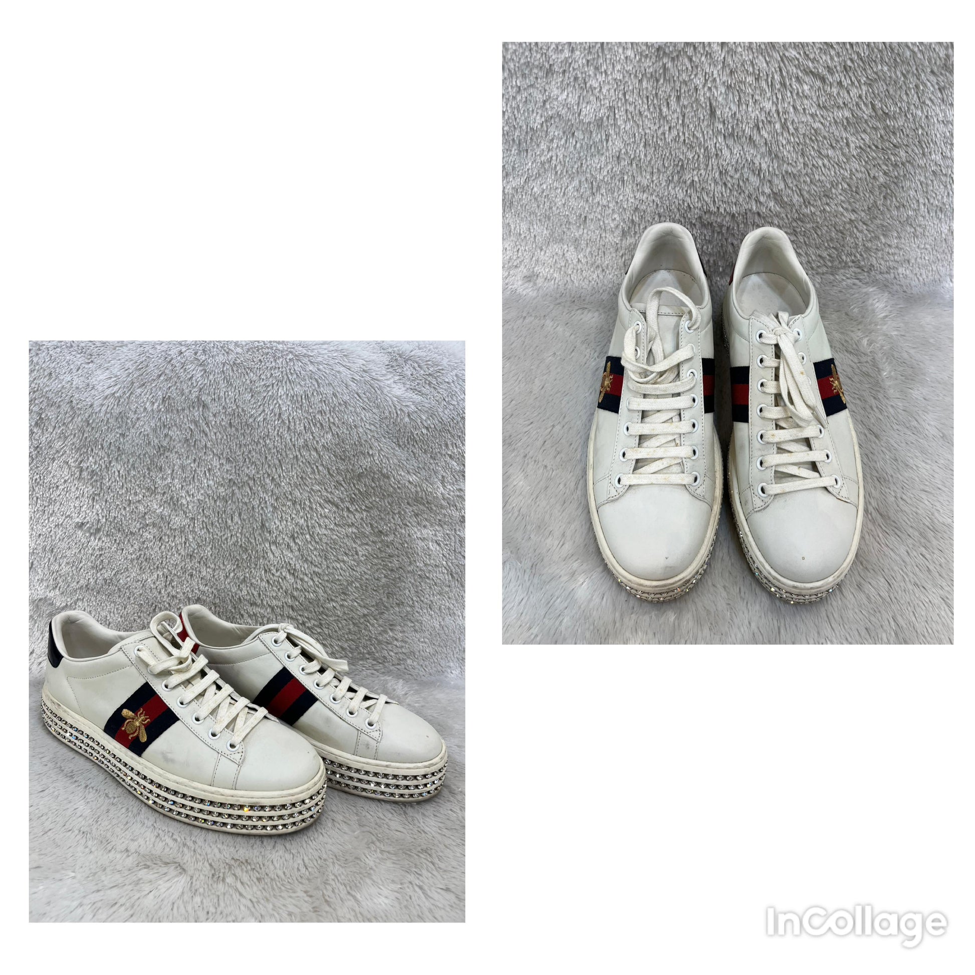 Gucci Sneakers Ace Crystal Bee White Size 38 ½