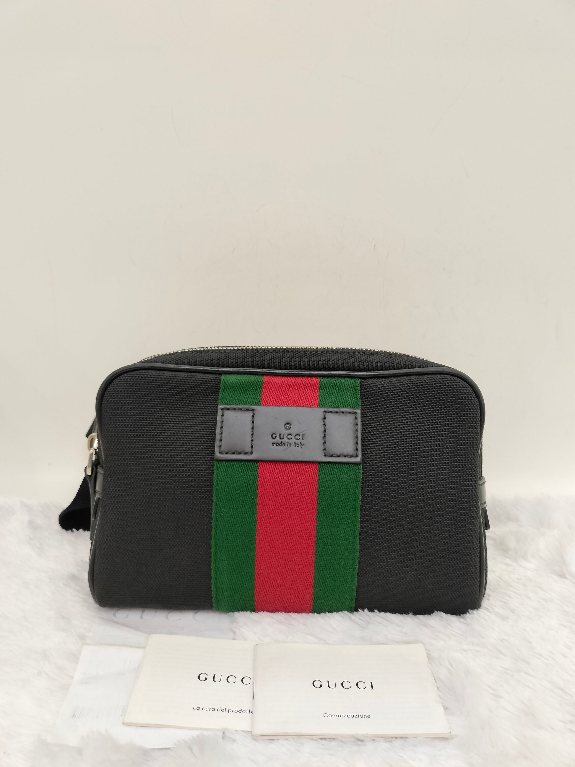 Gucci Techno Web Belt Bag Stripe Canvas Black SHW