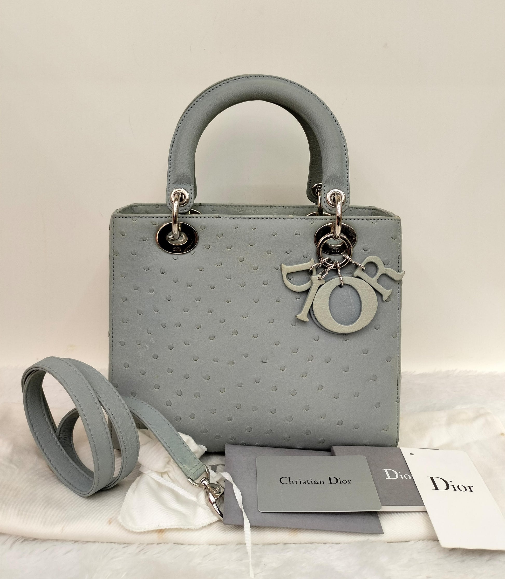 Lady Dior Medium Ostrich Baby Blue SHW 2017