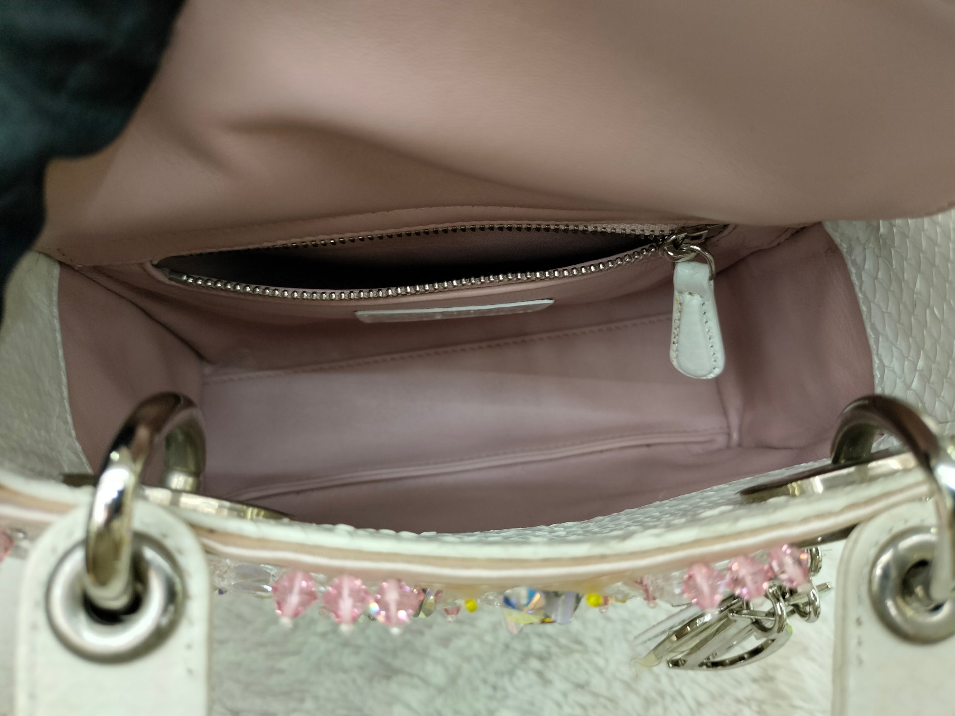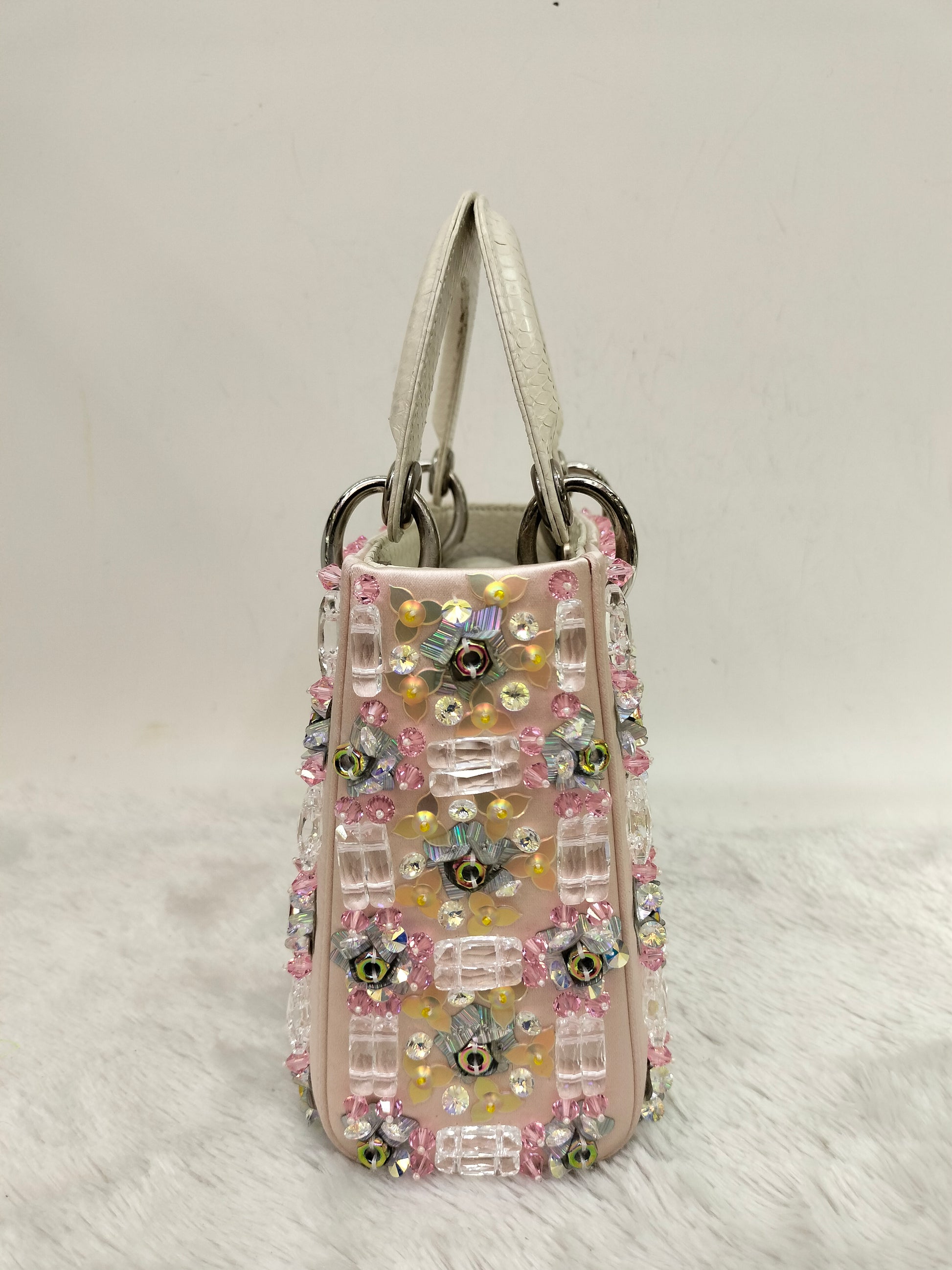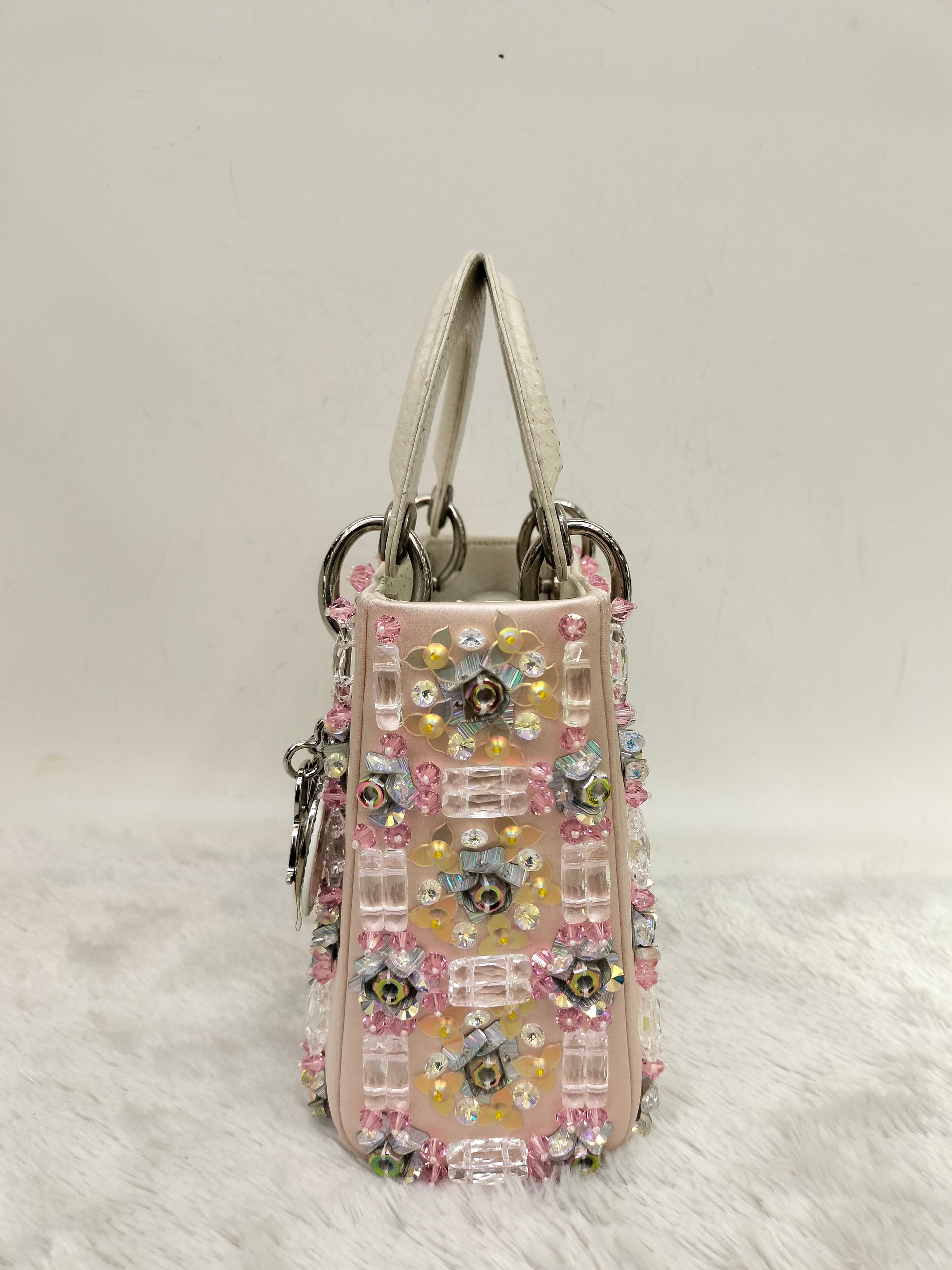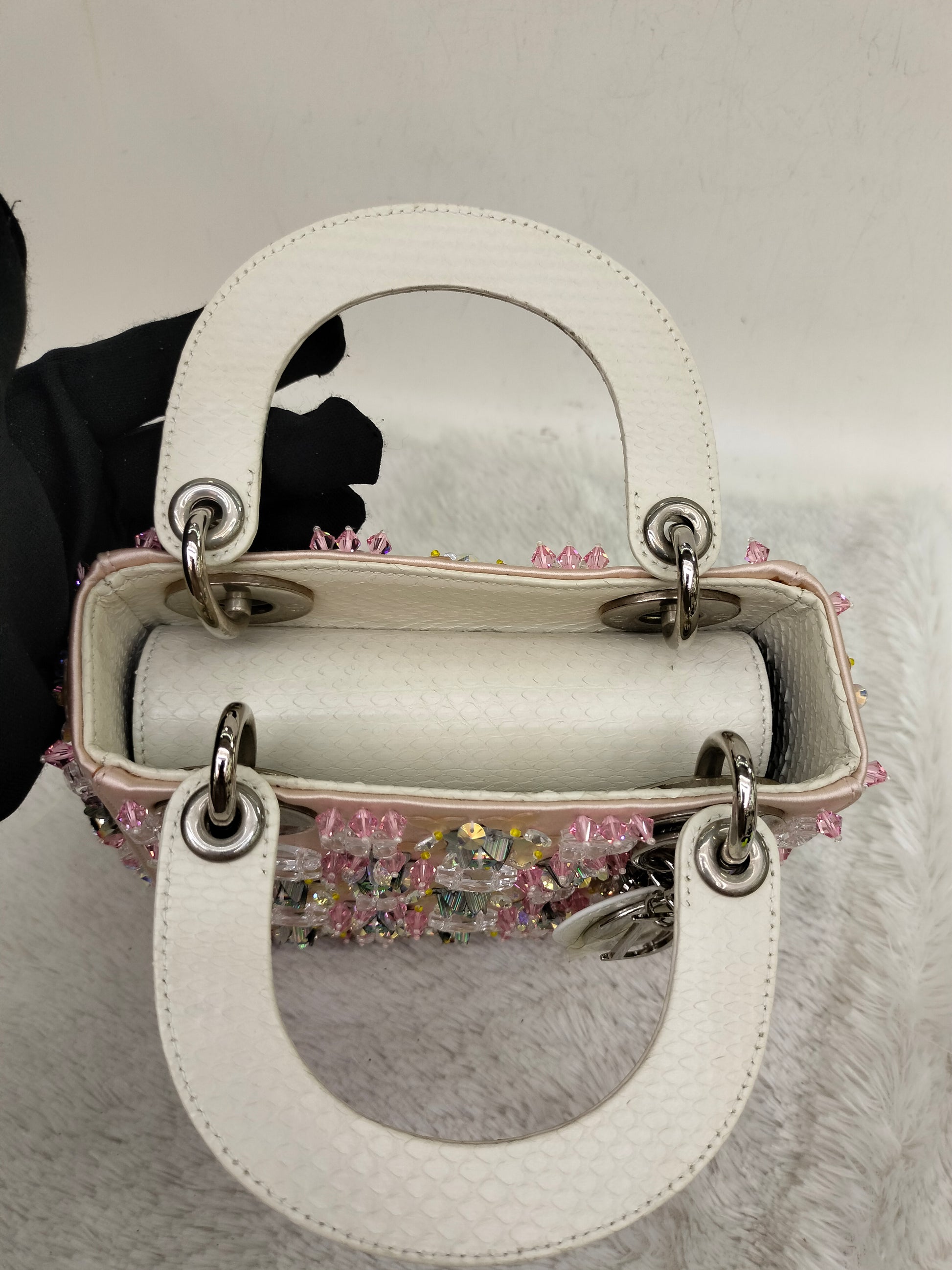 Lady Dior Mini Cannage Crystal Satin Pink Handle Python SHW 2016