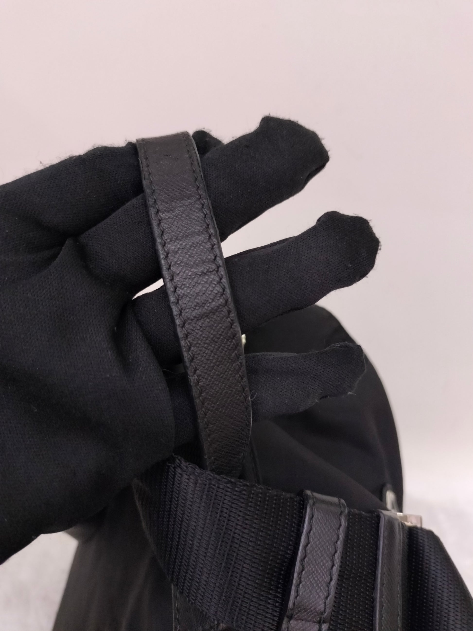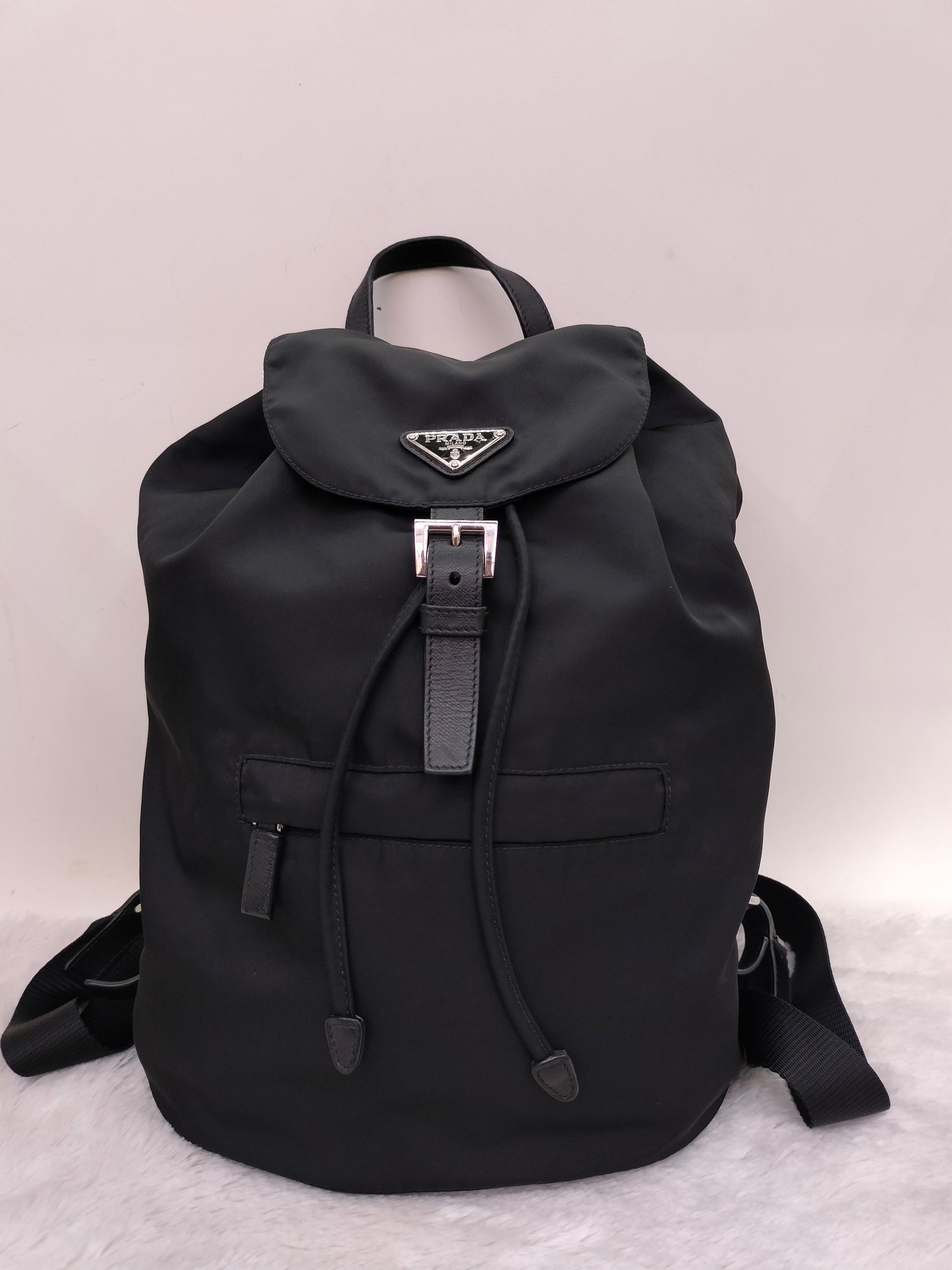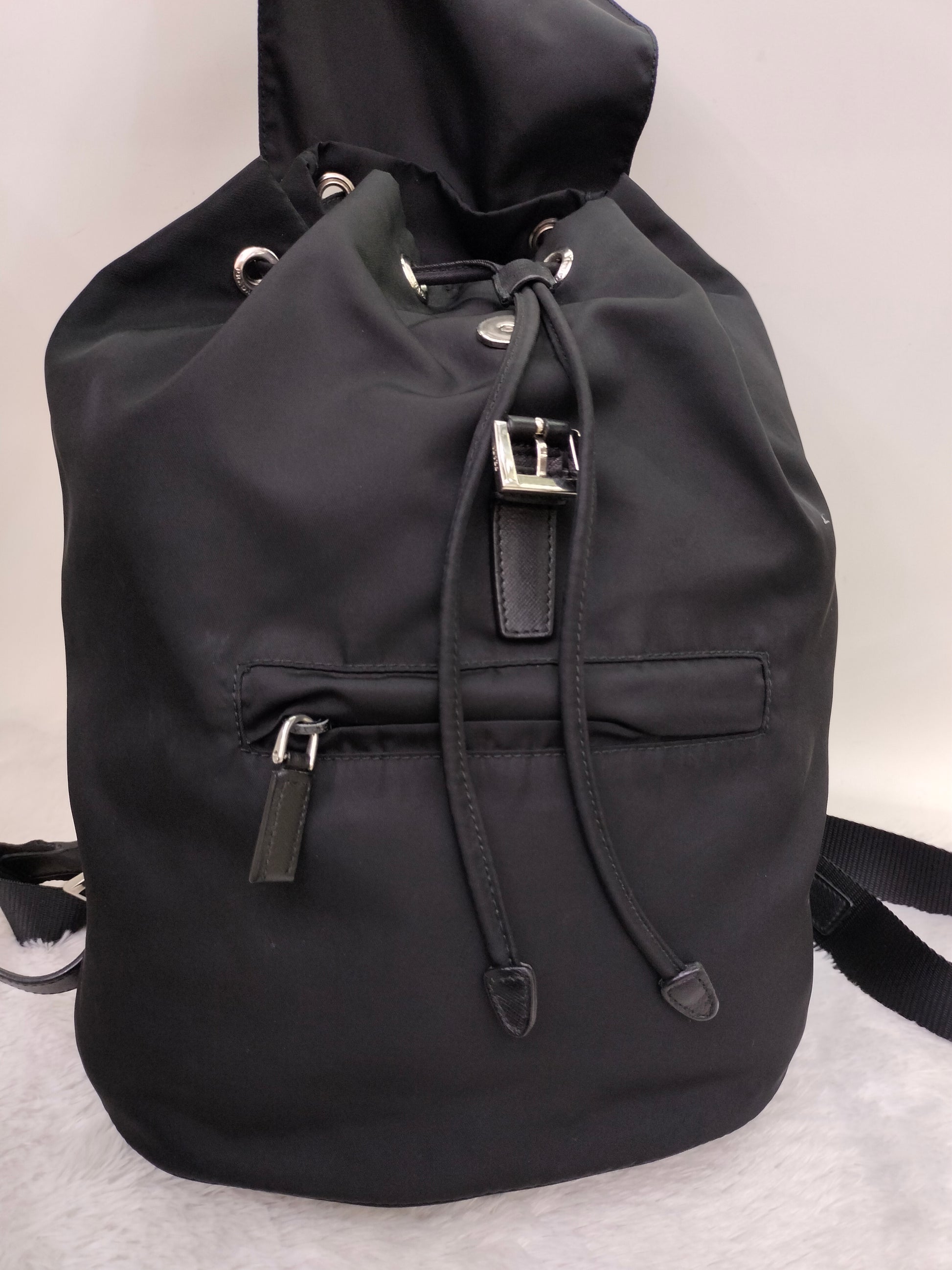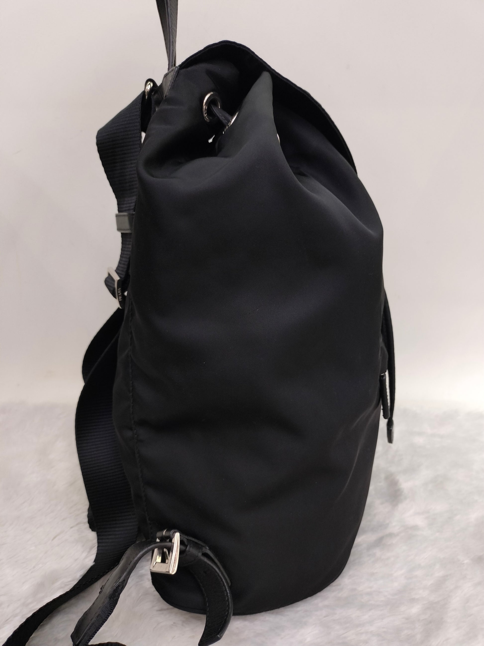 Prada Drawstring Backpack Nylon Black SHW