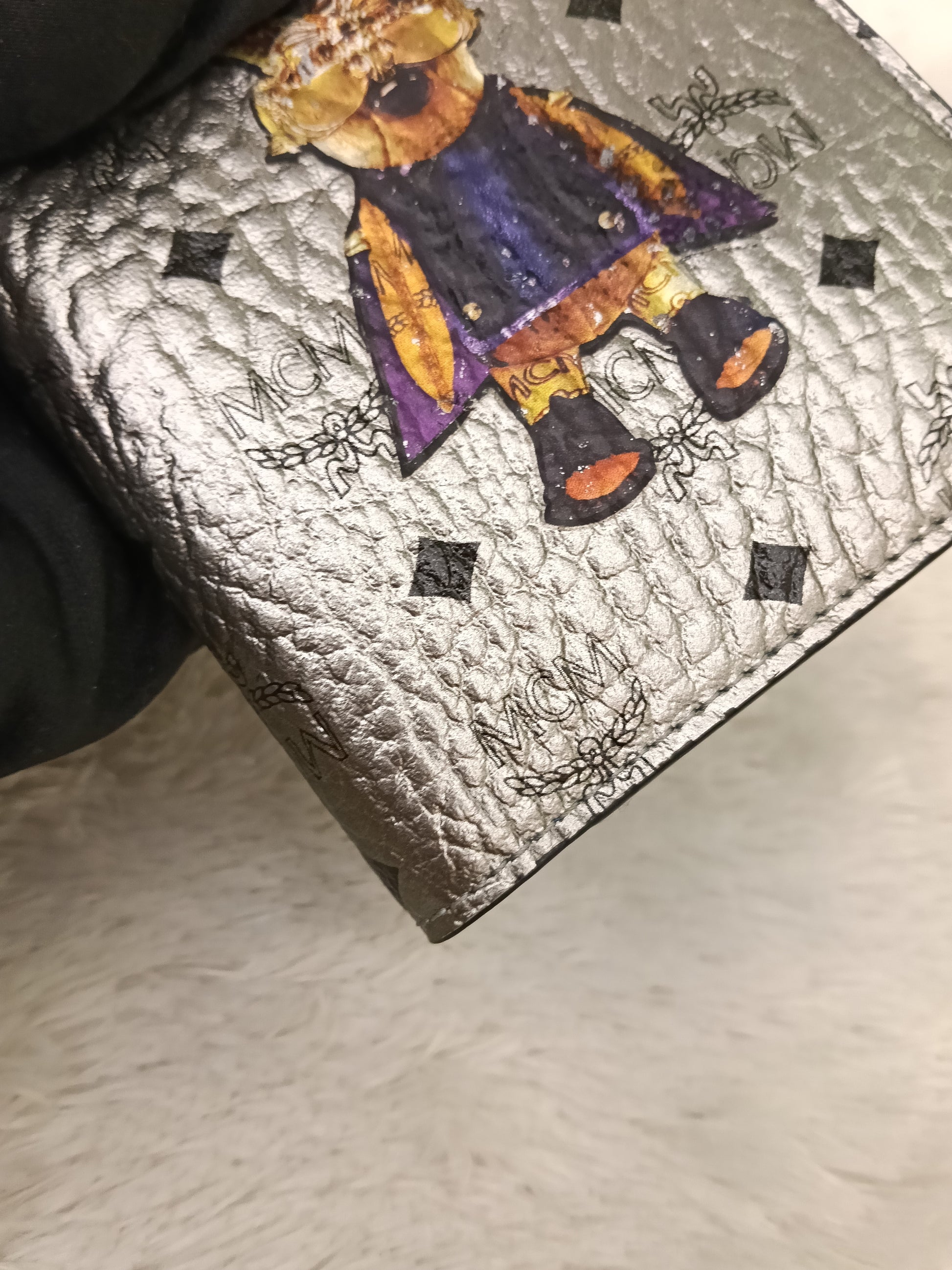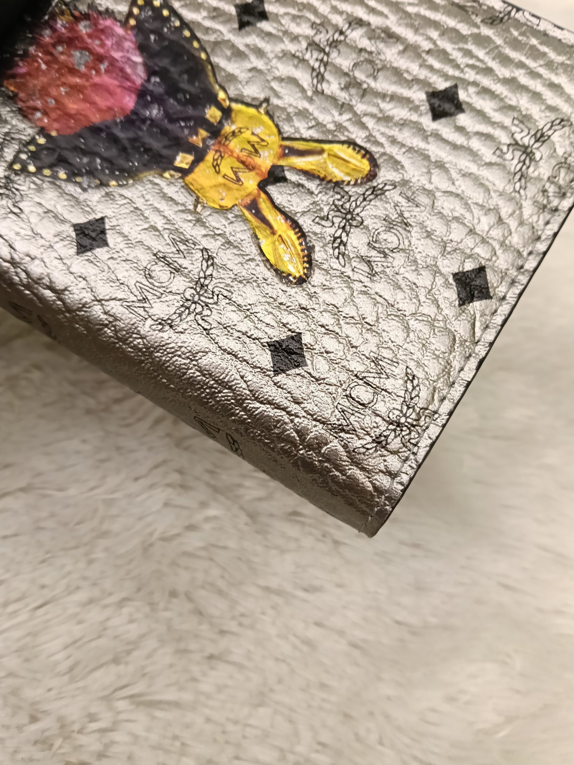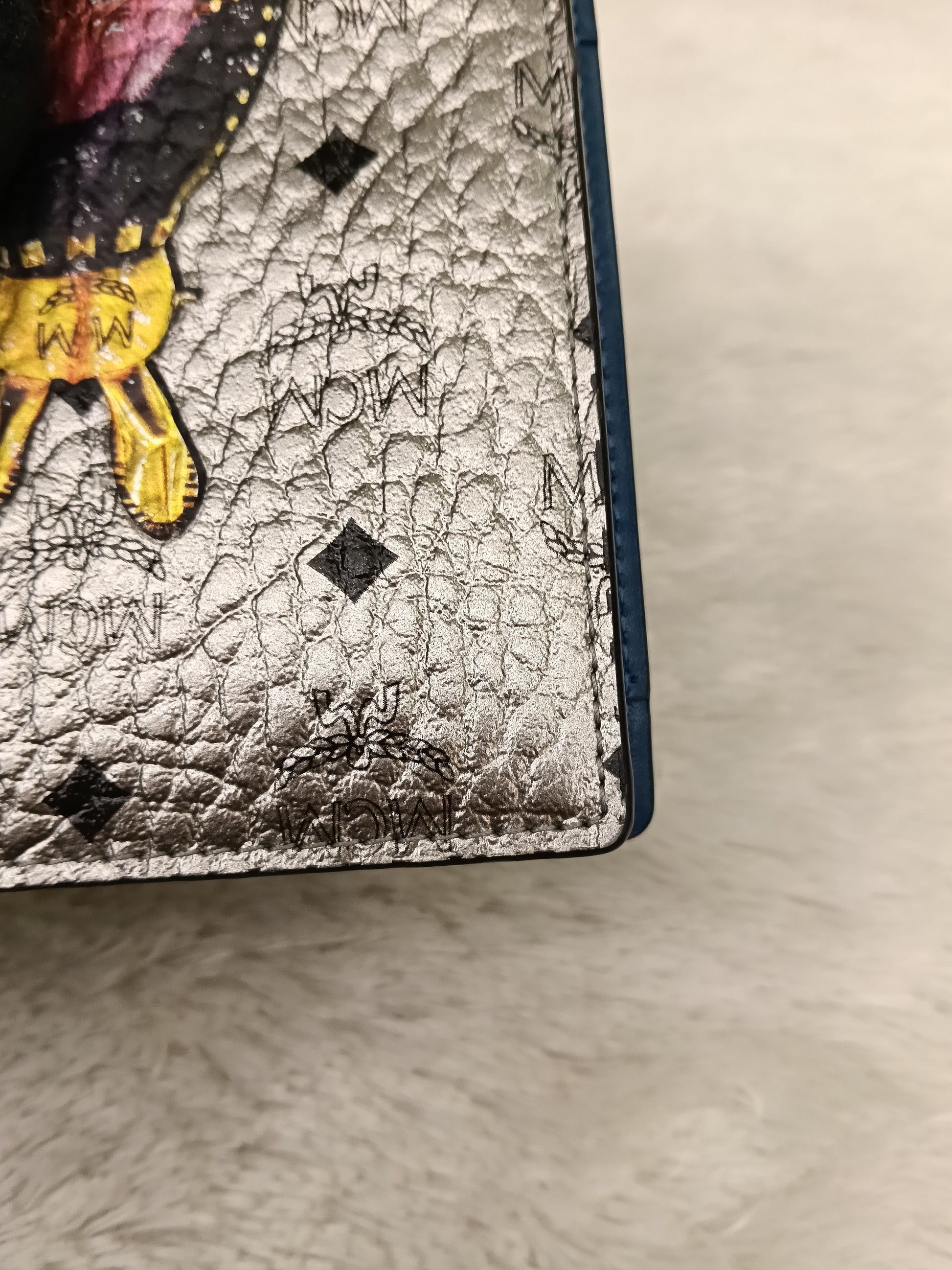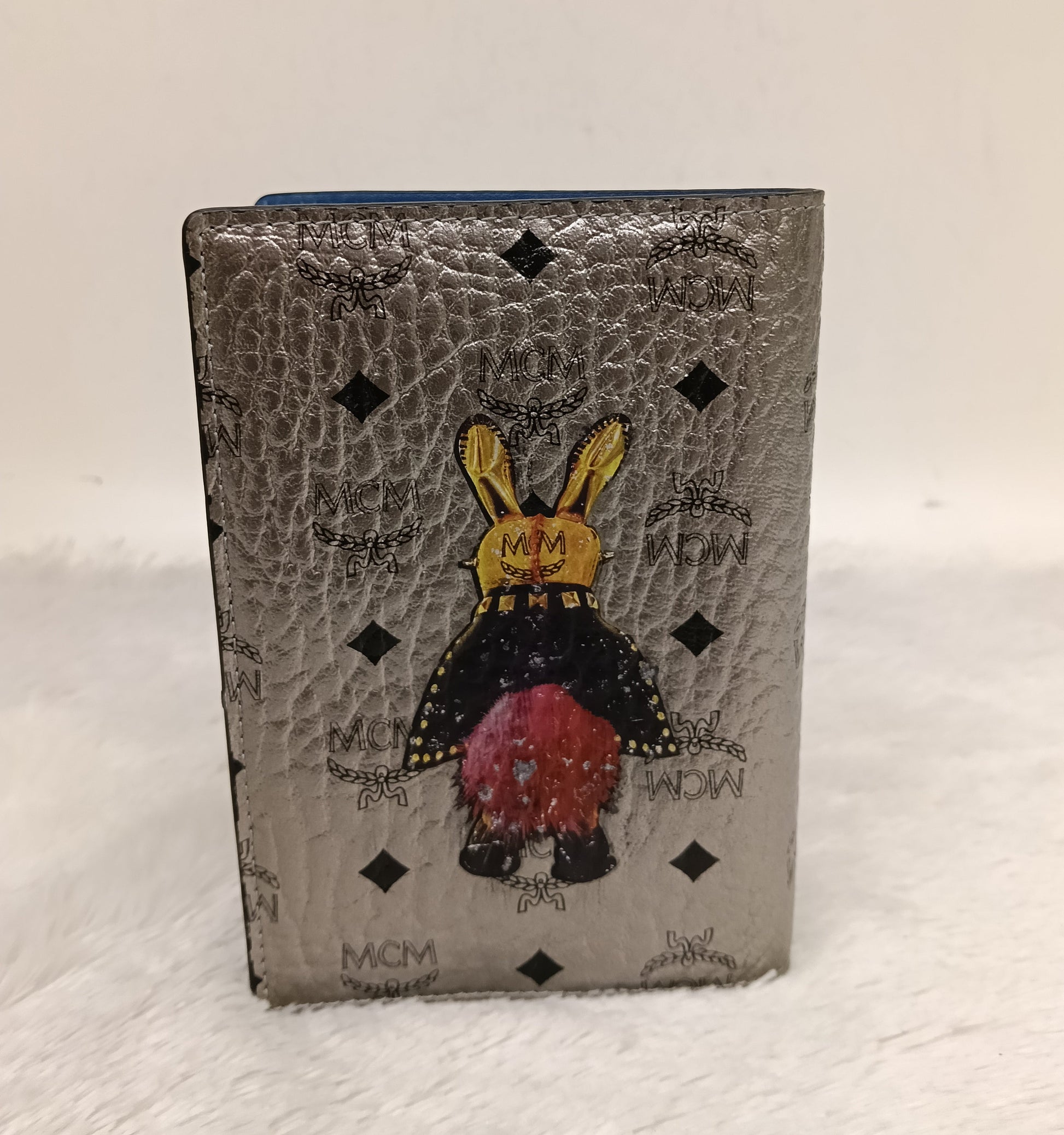 MCM Pasport Holder Rabbit Visetos Silver Blue